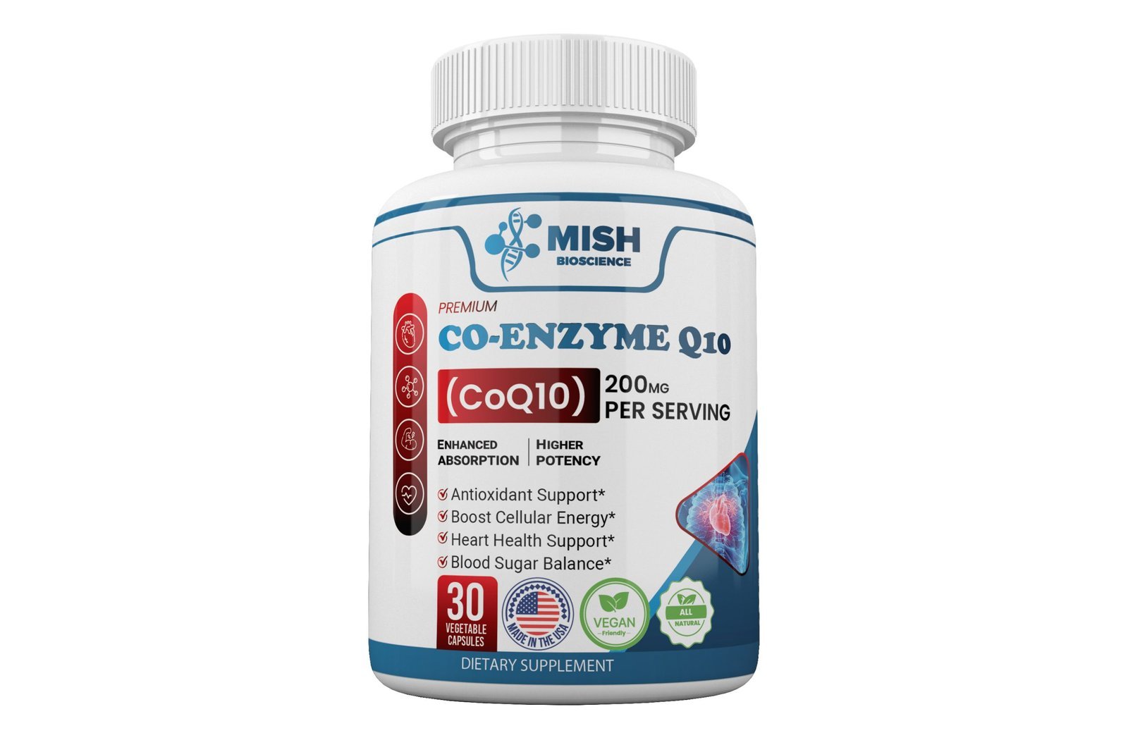 The good news is that research suggests taking CoQ10 supplements might help ease these muscle issues caused by statins [Caso, 2007]. So, in the world of health, CoQ10 is a pretty big deal. It’s your heart’s ally, your energy booster, and your muscles’ best friend. Mish Bioscience’s CoQ10 200mg capsules offer a concentrated source of this critical enzyme, providing numerous health benefits.