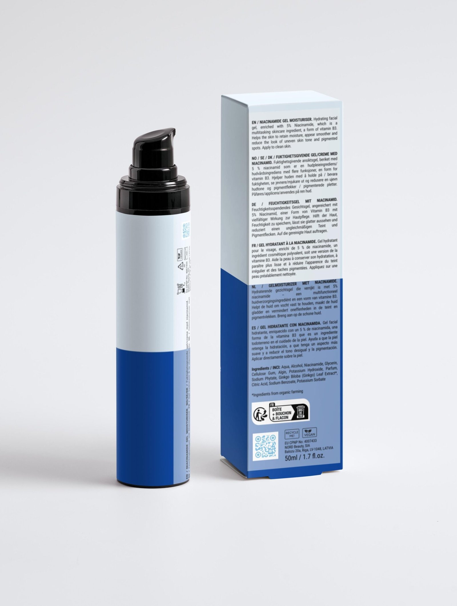 Hydrating facial gel, enriched with 5% Niacinamide, which is a multitasking skincare ingredient, a form of vitamin B3. Helps the skin to retain moisture, appear smoother and reduce the look of uneven skin tone and pigmented spots. Apply to clean skin.