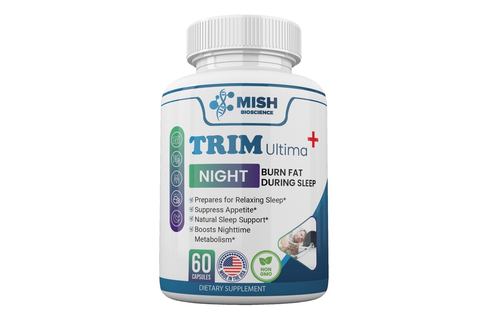 MishBio TRIM ULTIMA PLUS is the top-rated nighttime Fat Burner in the market. It is meticulously crafted to not only facilitate weight loss but also to promote improved sleep quality and mood enhancement. The unique synergy of carefully selected ingredients in our Nighttime Fat Burner capsule is designed to offer a holistic approach to overall well-being.